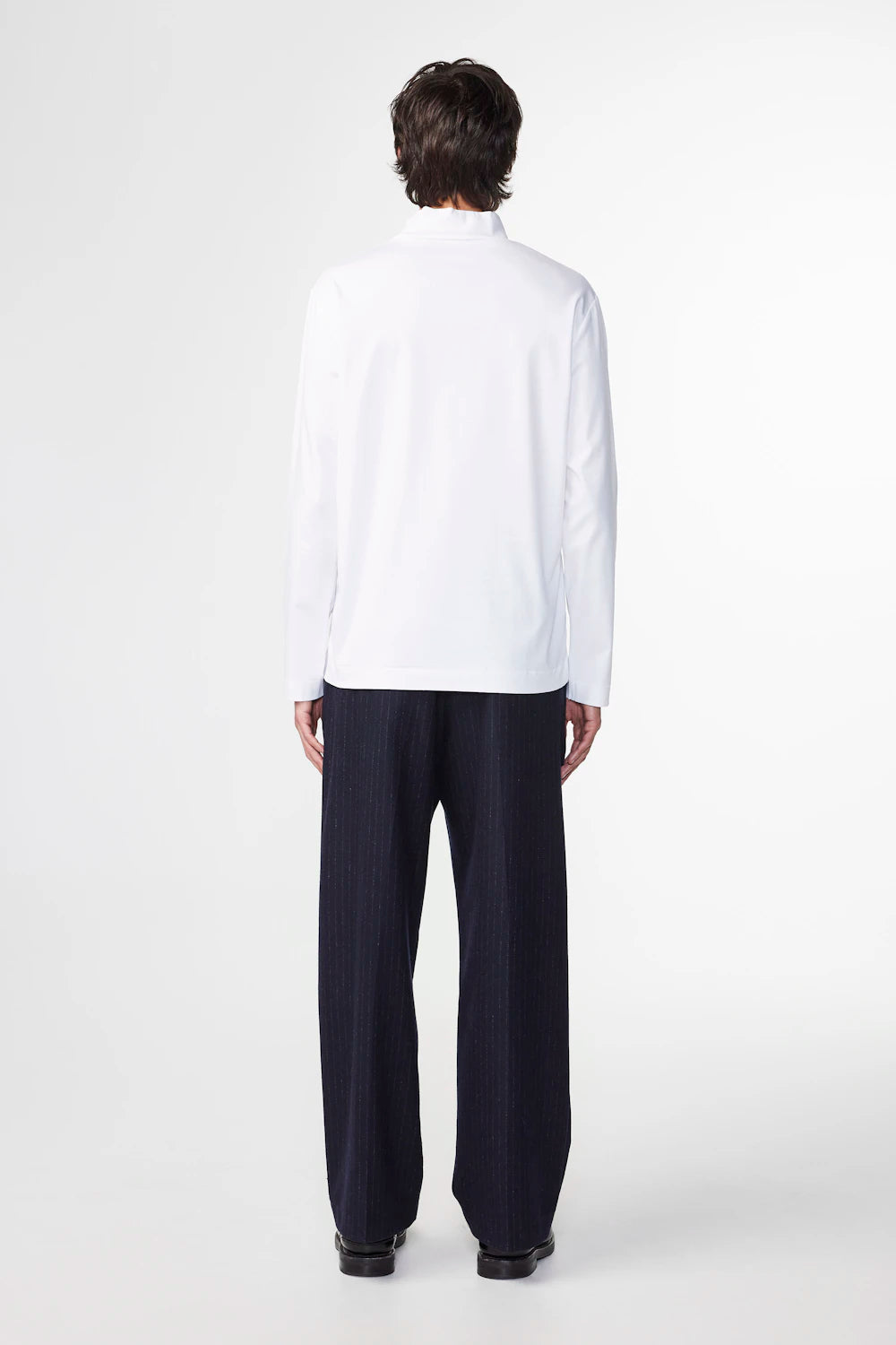 Tee crafted from organic cotton with a minimalistic design, features a mock neck and drop shoulder for timeless appeal.