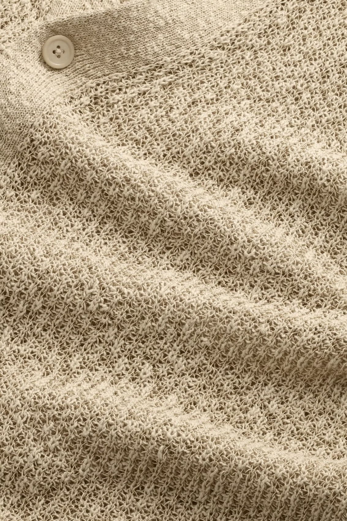 Relaxed fitted cardigan made from a recycled cotton blend with a cool feel. Designed with a v-neck and Mother-of-Pearl buttons.