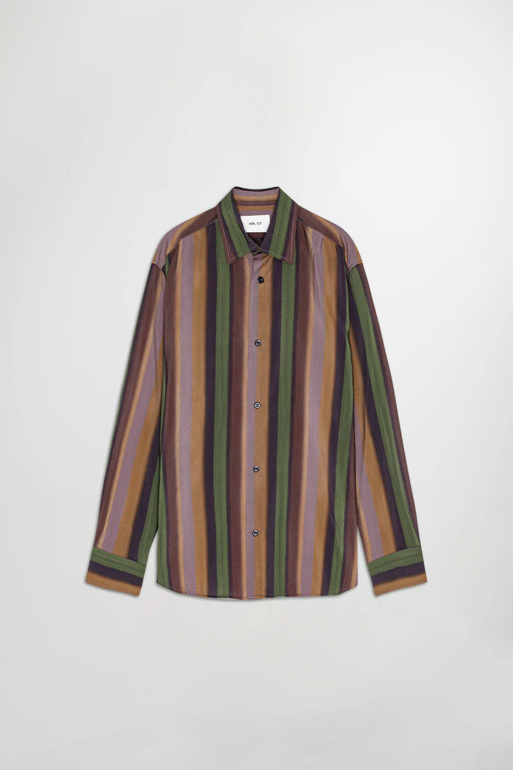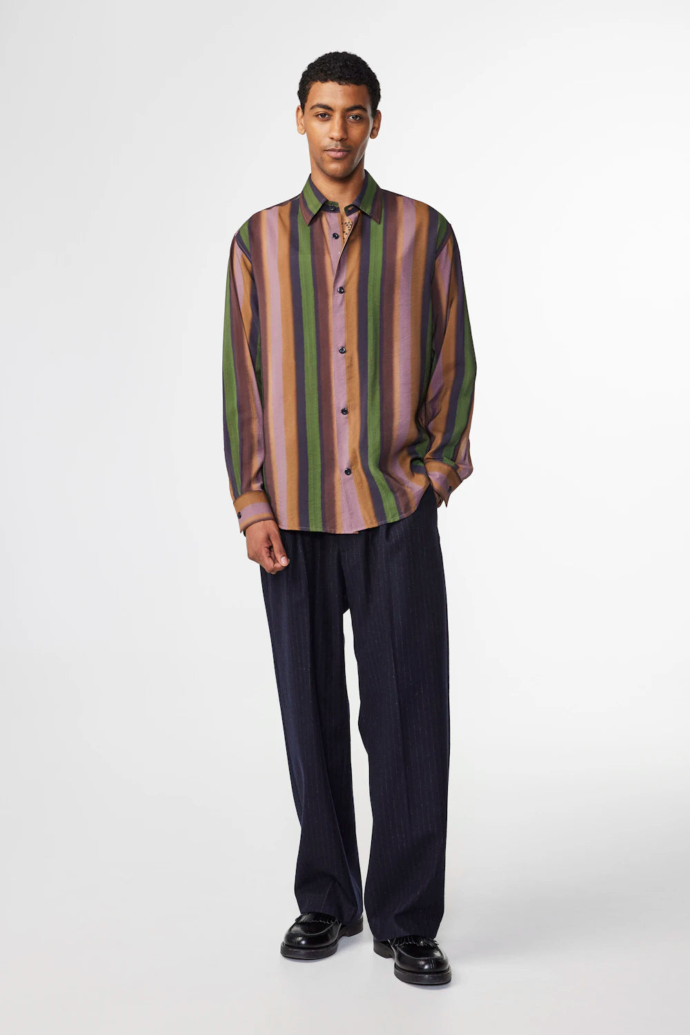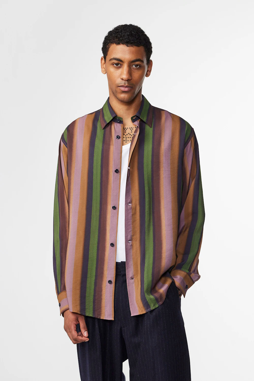 Shirt crafted from a drapey viscose blend. Designed with an all-over printed artwork.
