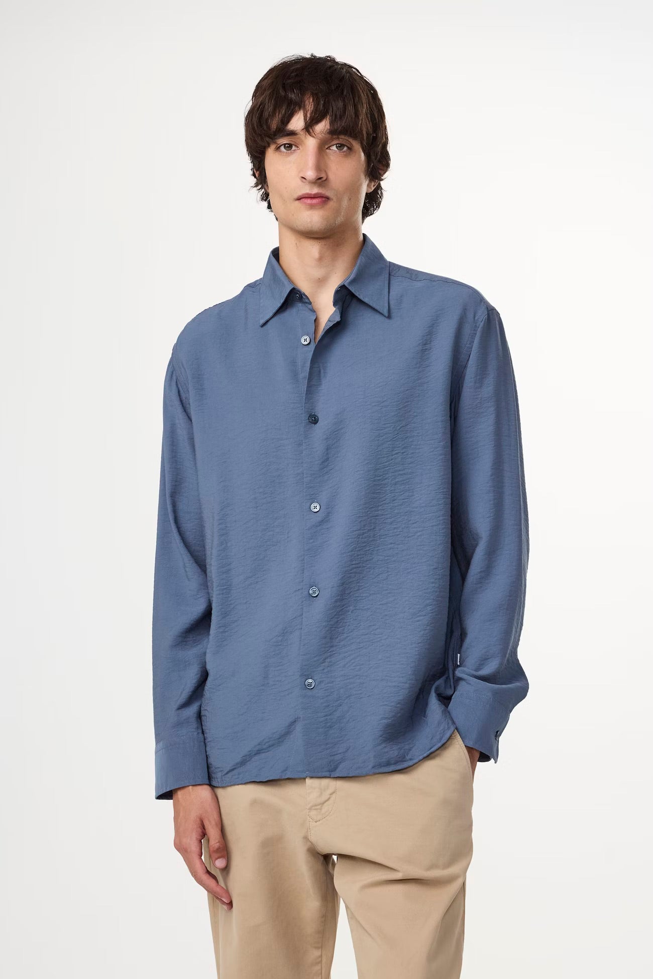 Button-up twill shirt crafted in a crisp, lightweight TENCEL™ modal blend, topped with Mother-of-Pearl buttons.