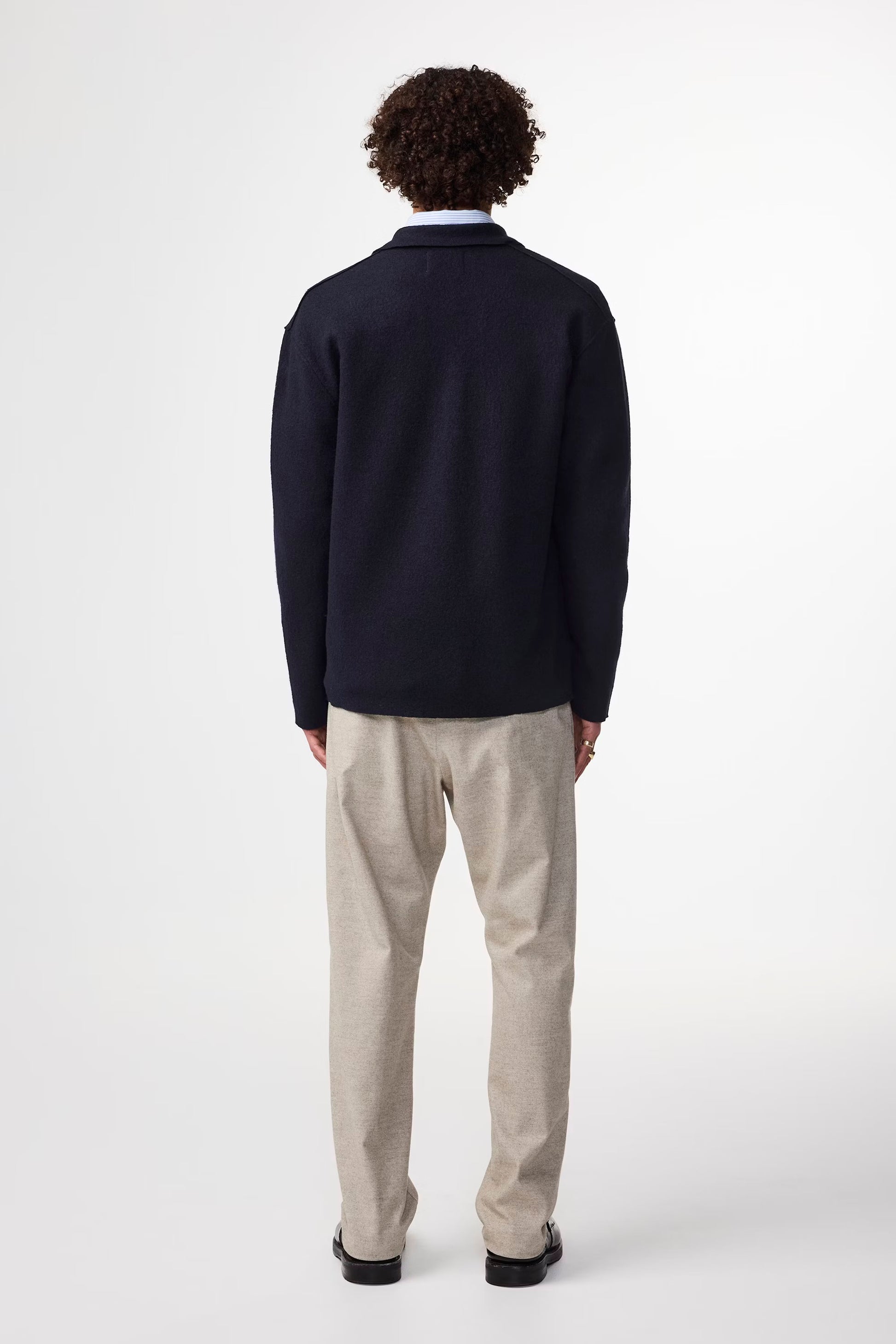 Casual overshirt crafted in soft, lightweight boiled Merino wool, designed with a shirting collar, raw edges, and NN.07 logo buttons.
