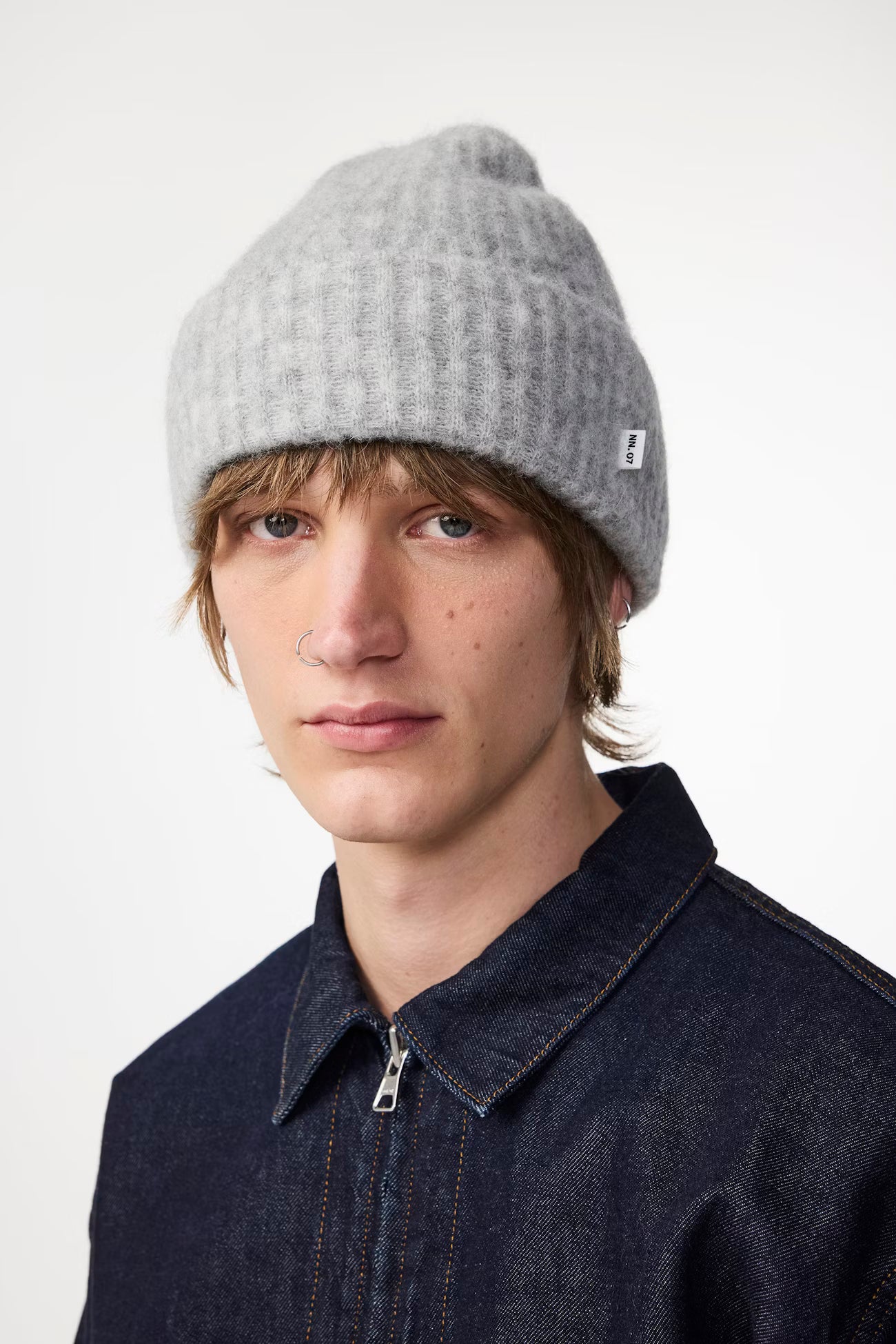 Rib-knitted beanie made in Italy from an ultra-soft baby alpaca blend. Knitted in a textured stitch with added stretch for enhanced comfort and warmth.