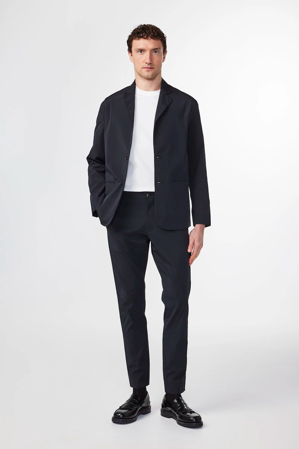 Crafted from a crisp polyester, this unlined blazer is cut in a relaxed silhouette with handy welt pockets.