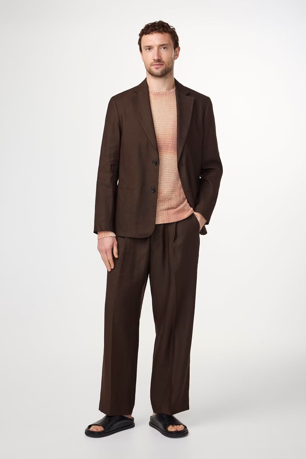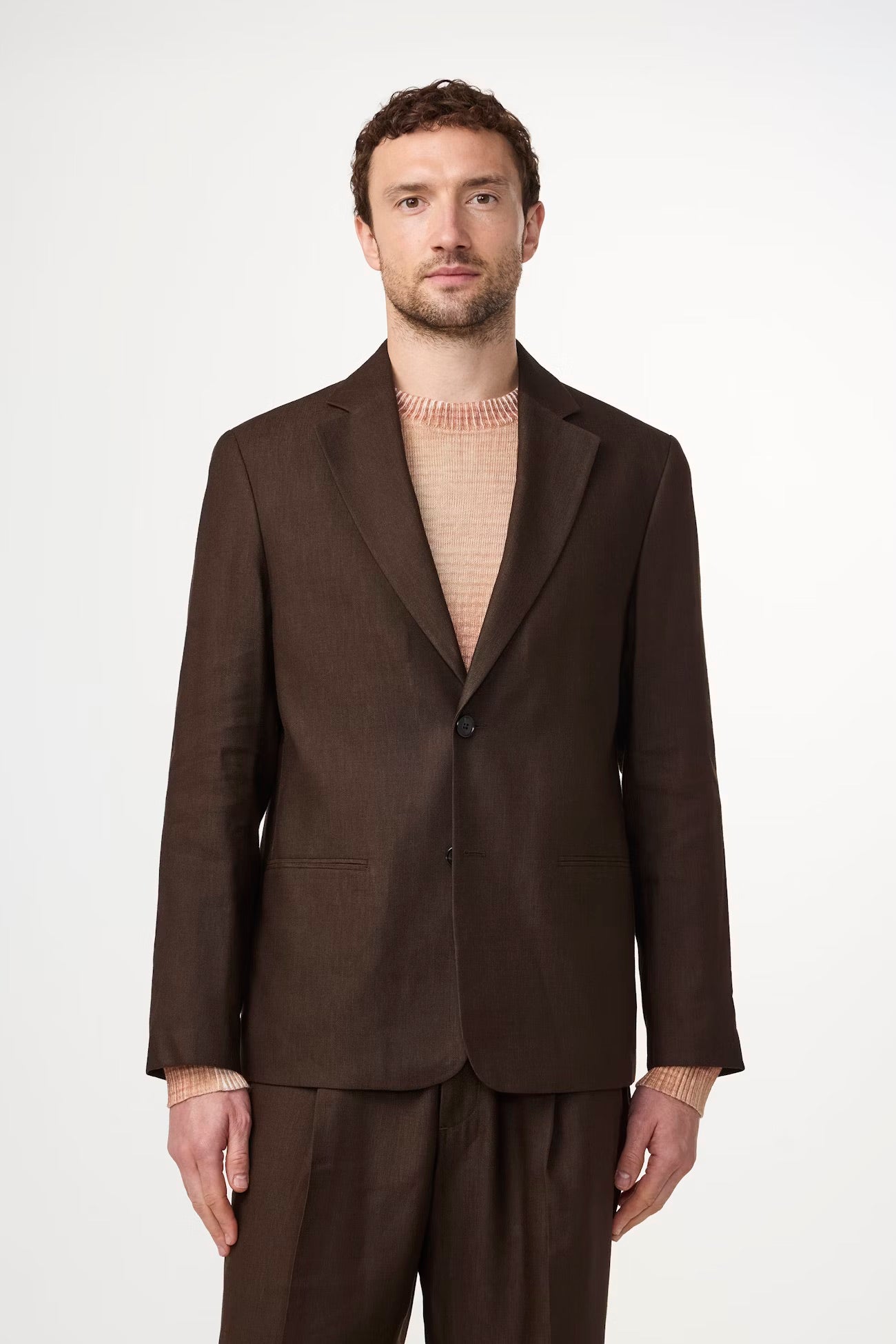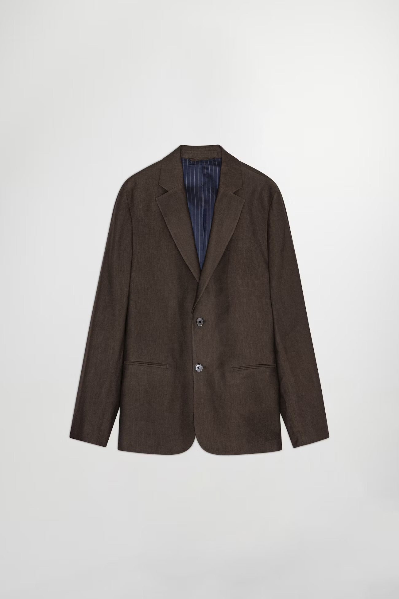 Fully lined blazer jacket designed with a relaxed silhouette crafted in an LENZING™ ECOVERO™ viscose and linen blend. Complete with two welt pockets.