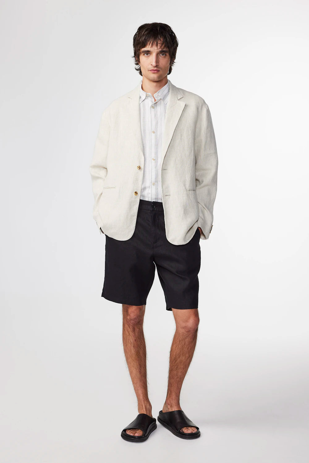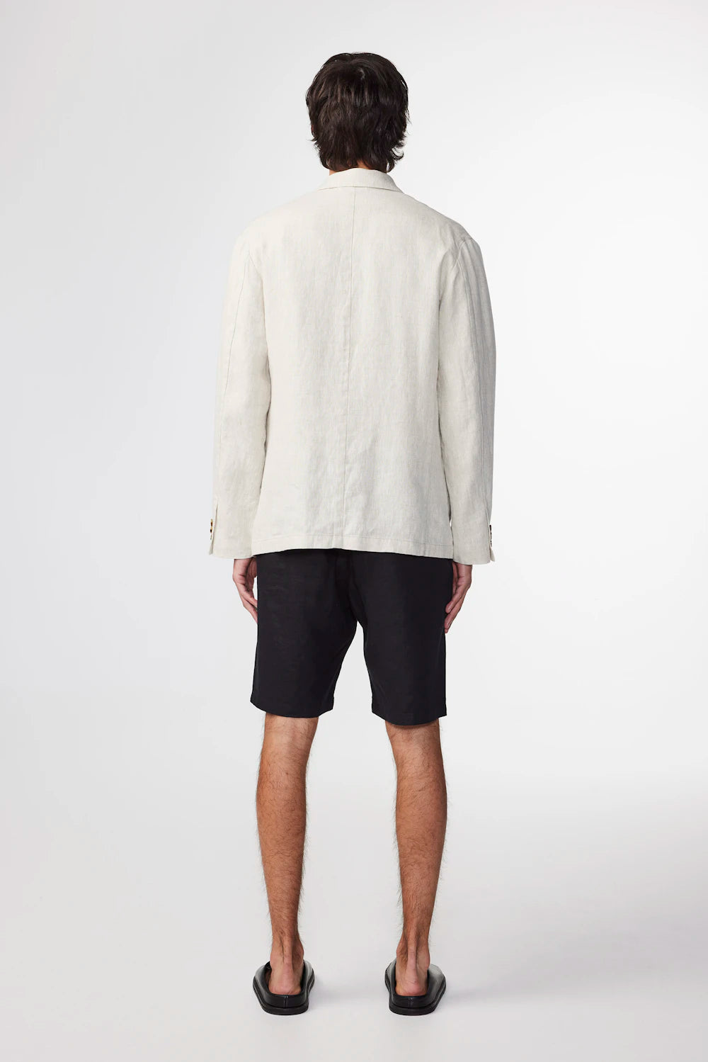 Unlined linen blazer jacket designed with a relaxed silhouette. Complete with handy pockets.