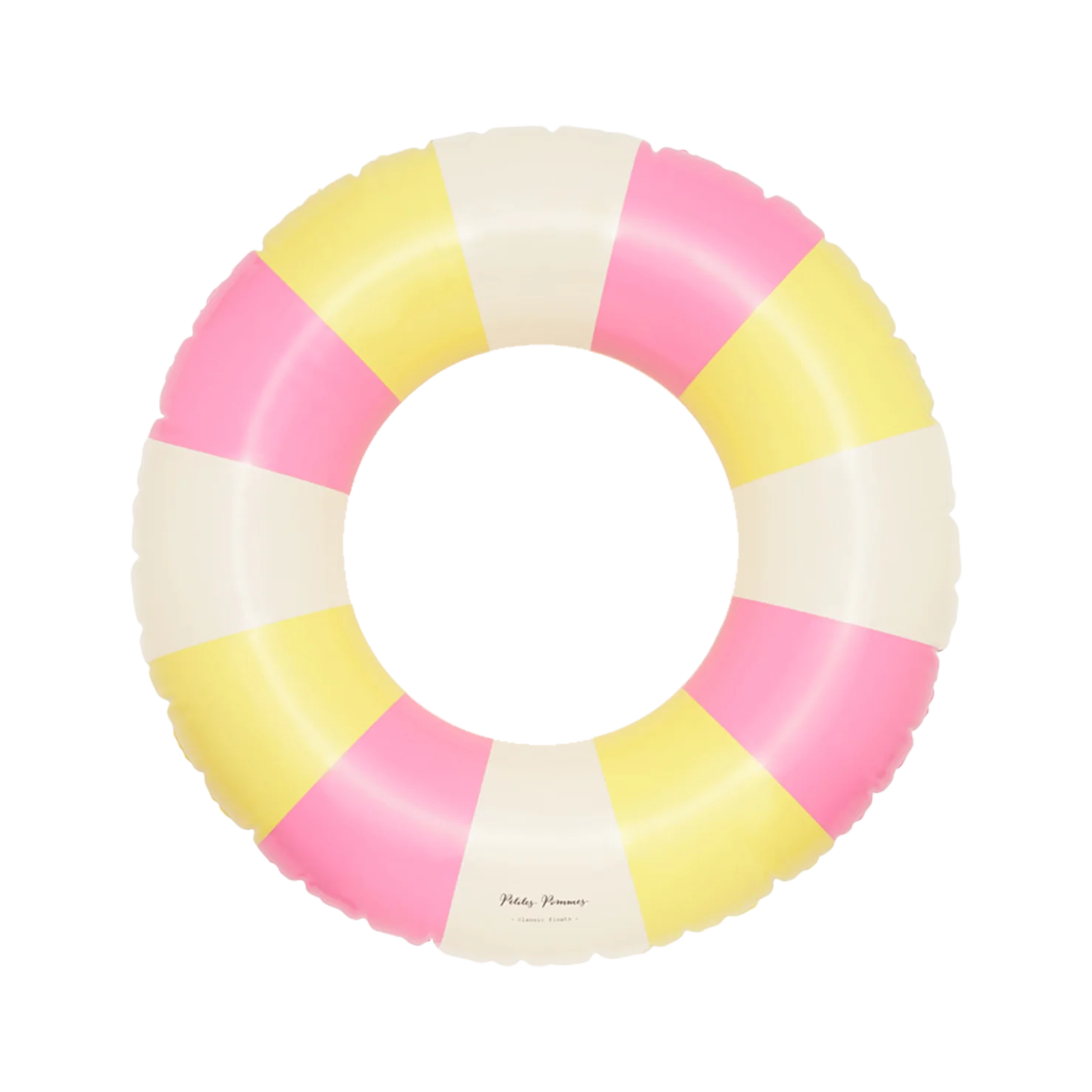 The Petites Pommes swim ring is a reborn childhood classic - made with the attention to detail we have strived to make it last for seasons. Our characteristic striped floats come in 4 different sizes for toddler to adult, and in a range of beautiful colours to complete any summer look!