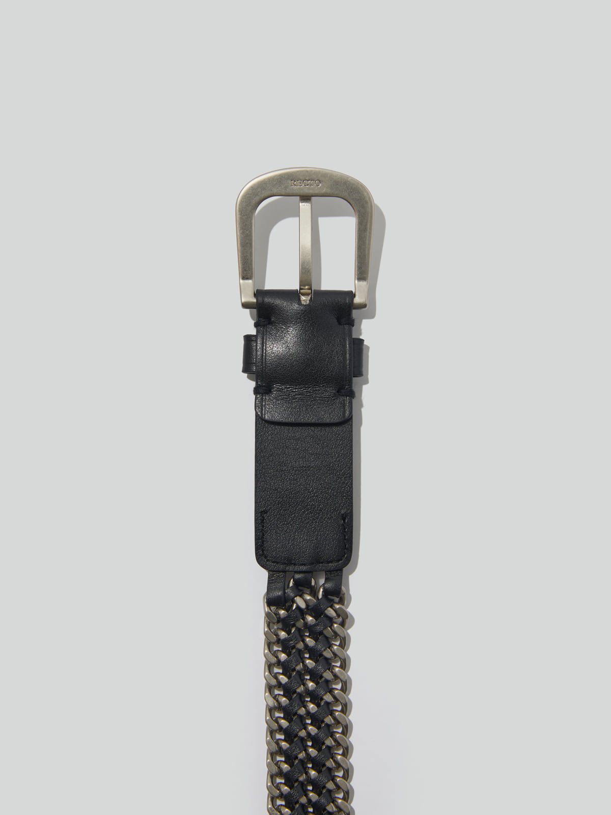 Elevate your style with the RECTO Leather Chain Belt, designed for a sophisticated edge. Crafted from high-quality leather, it features a distinctive chain detail that adds texture and visual interest. The logo-engraved buckle underscores its premium craftsmanship, while the adjustable size ensures a perfect fit. This belt seamlessly blends classic materials with modern accents, making it a versatile accessory for elevating any outfit.