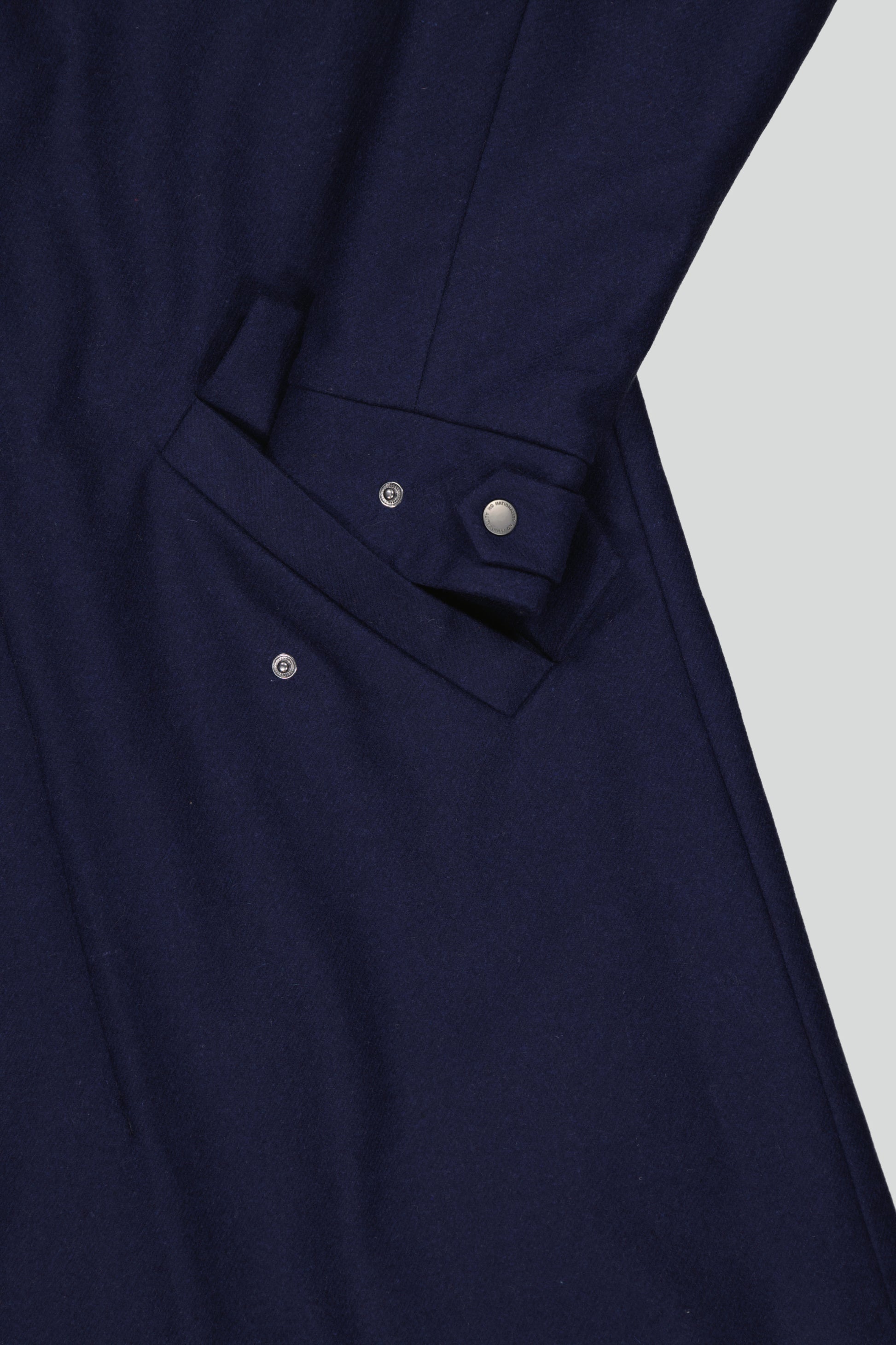 A blend of recycled wool provides a smooth finish for this easy-to-pair coat. Features a three-piece hood with metal button closure and twin flap-pockets at the waist. Finished with drawstring closure and button cuffs.