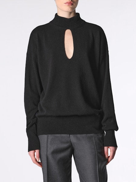 cut out sweater with mock neck