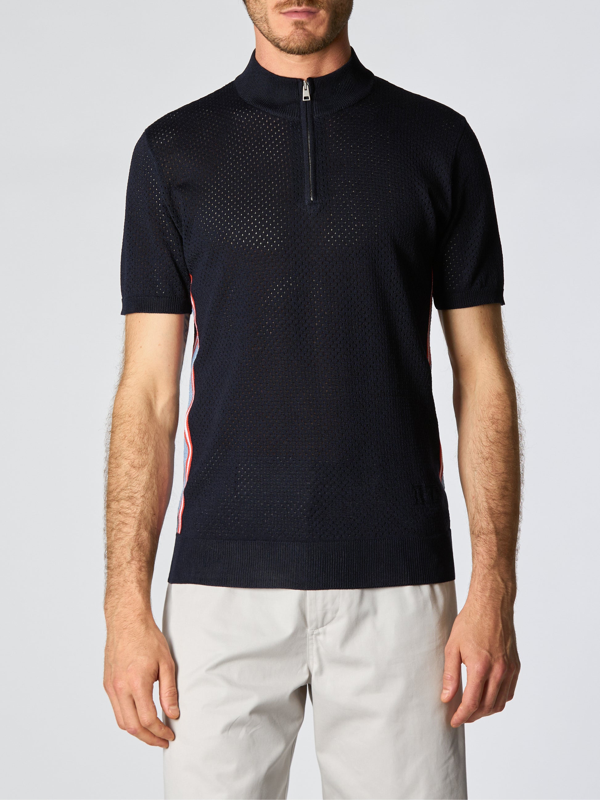 come striped polo sweater