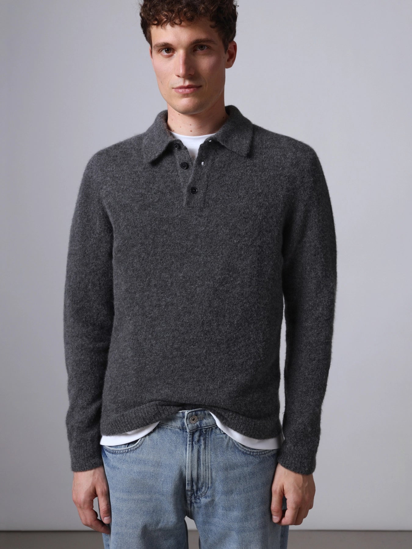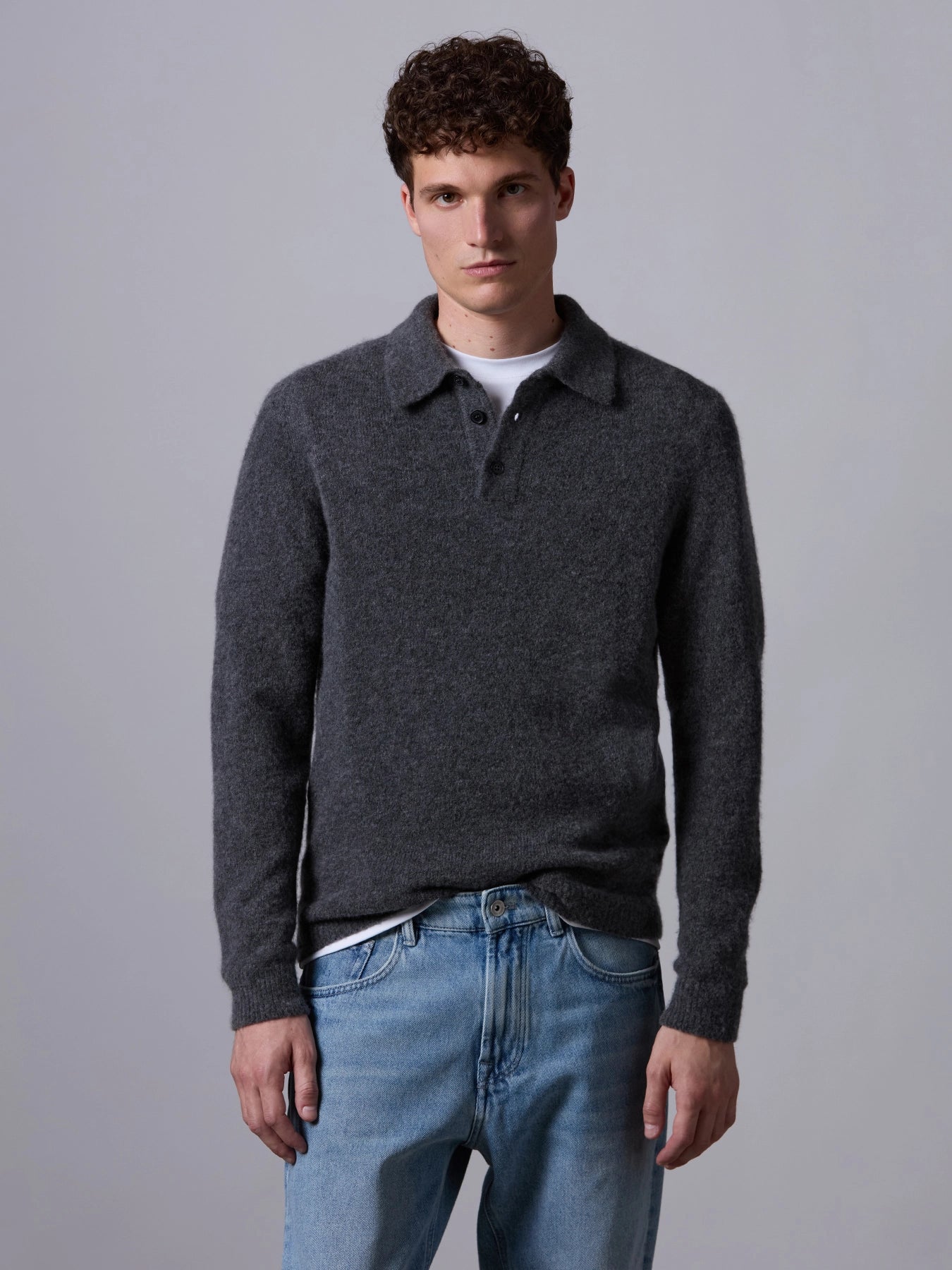 Regular-fit polo, made from a soft blend of cashmere and silk. It features ribbed cuffs and hem, and a collar with a three-button fastening.