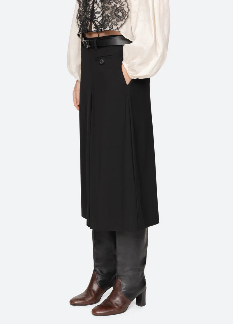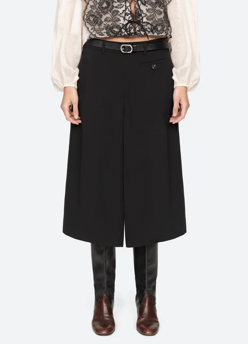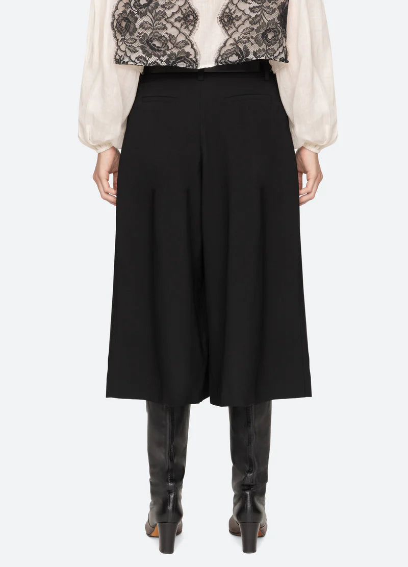 The Adeline wool belted culotte embodies effortless sophistication with its soft pleats and wide-leg, cropped silhouette.