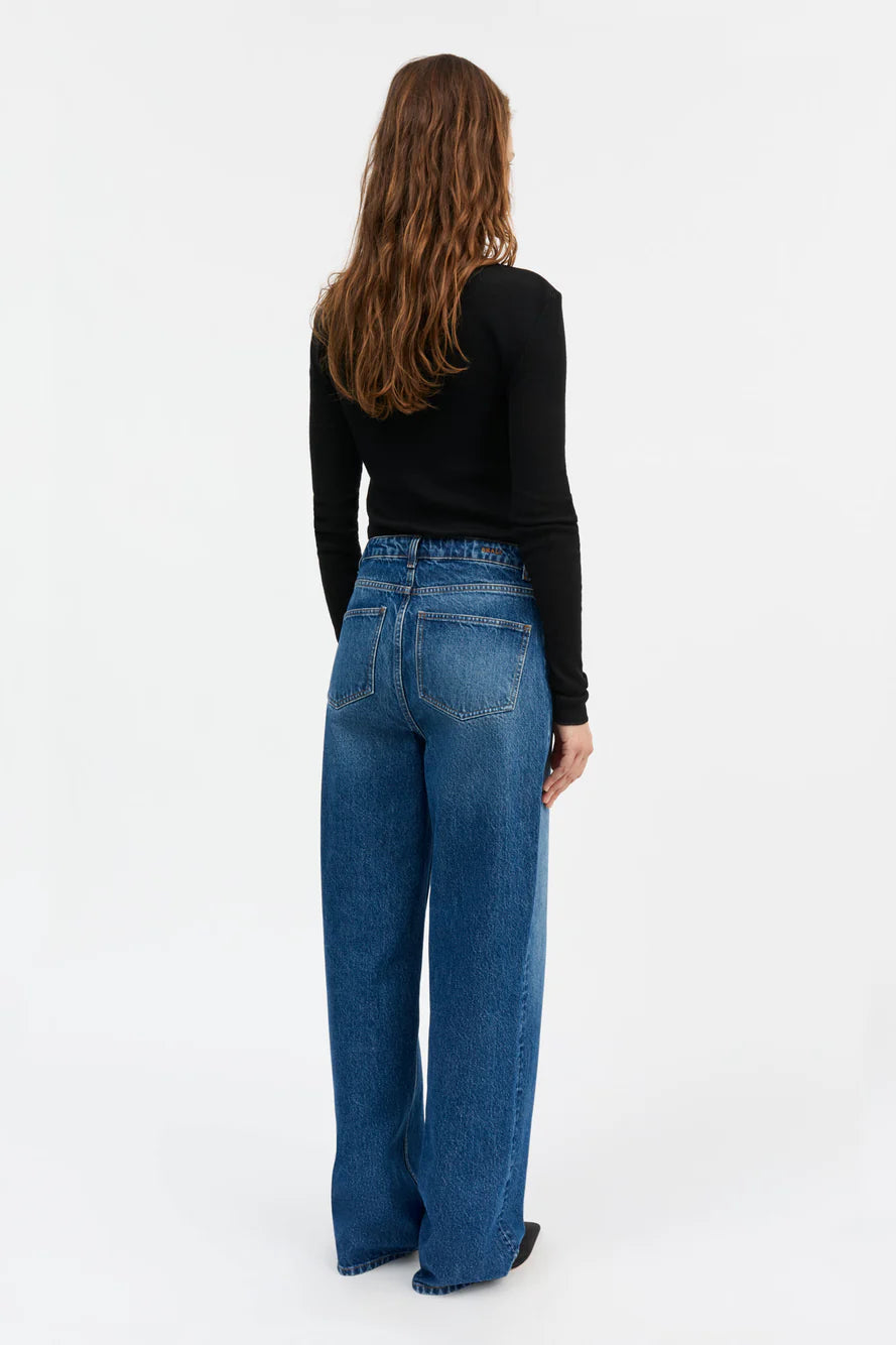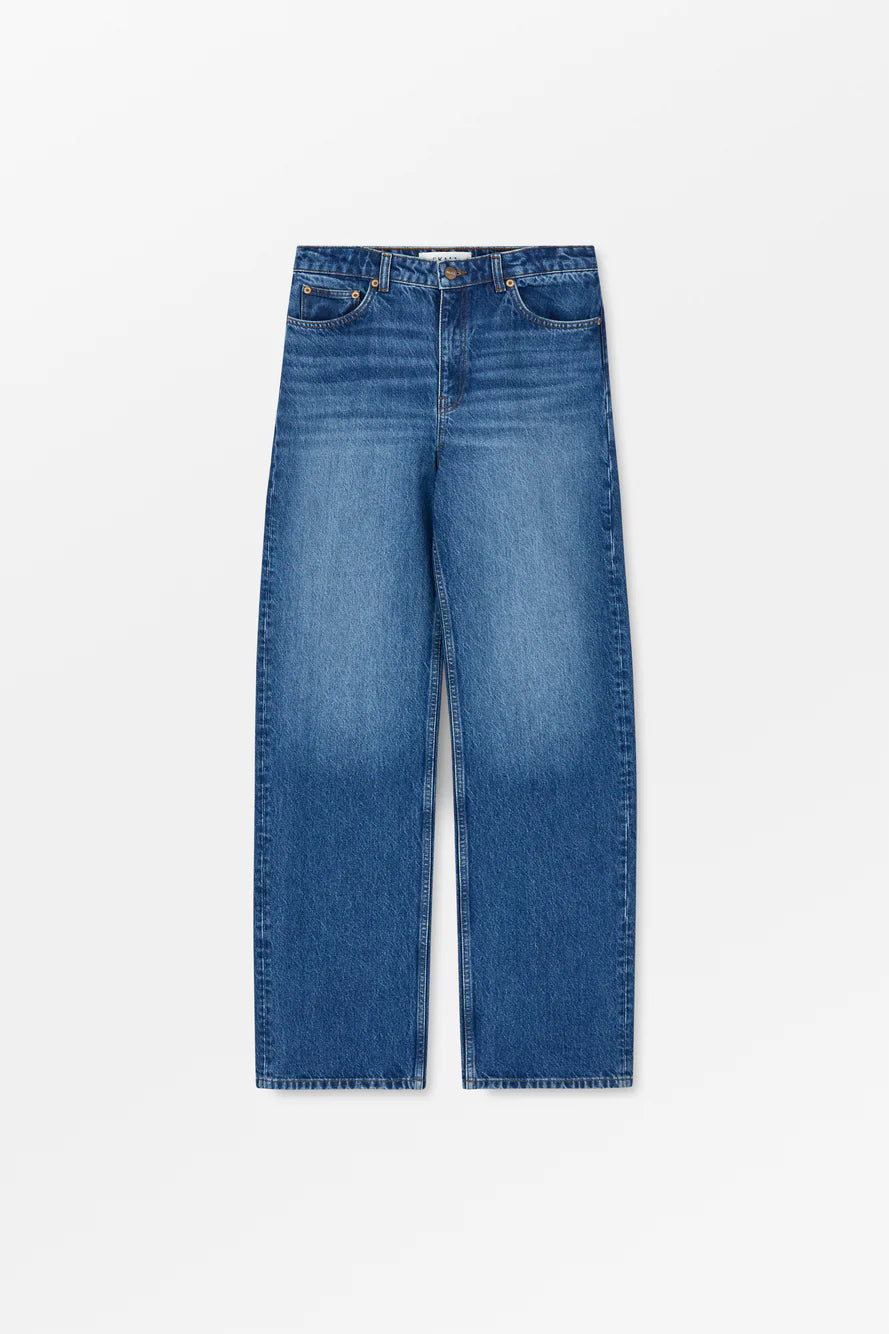 Maddy straight jeans in lightweight organic cotton are from Skall Studio’s GOTS certified denim line. The straight leg regular length jeans have a high waist, a classic five pocket design and belt loops. On the back of the waistband, they feature an embroidered SKALL logo.