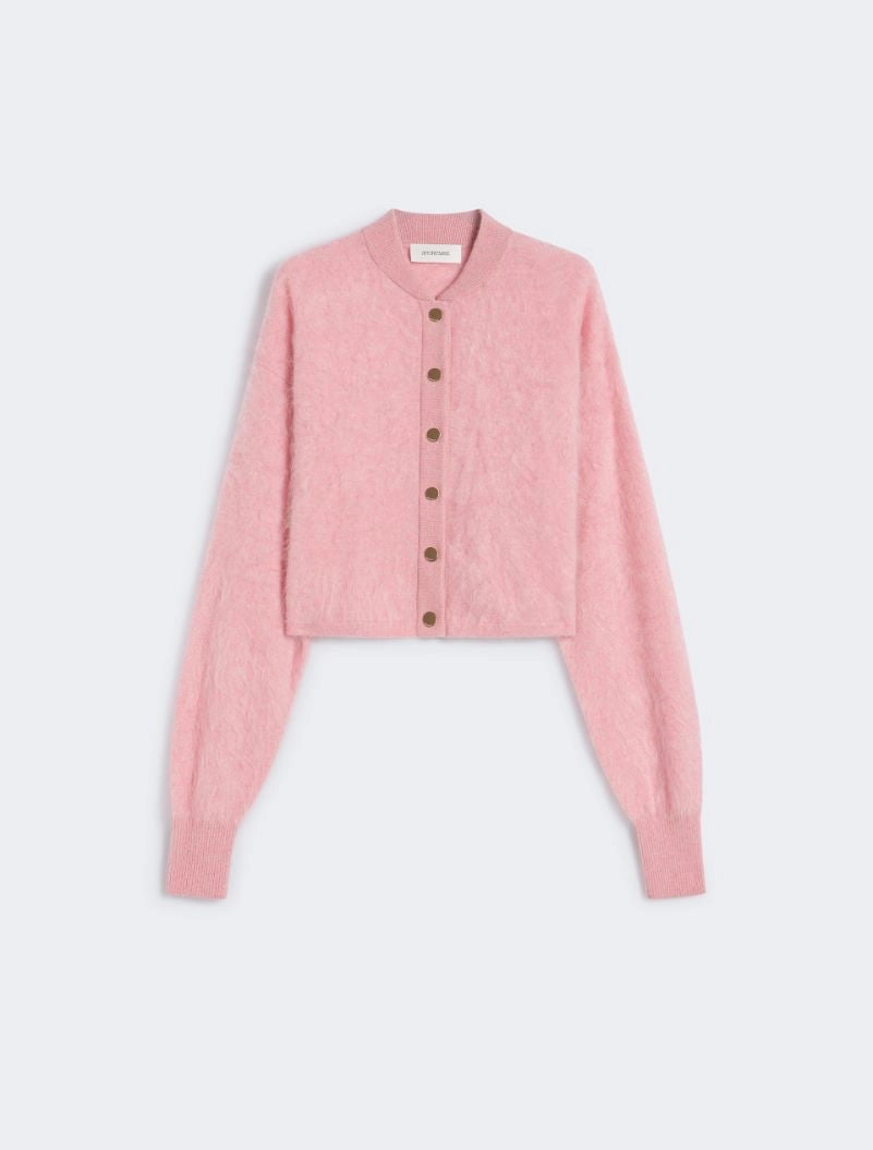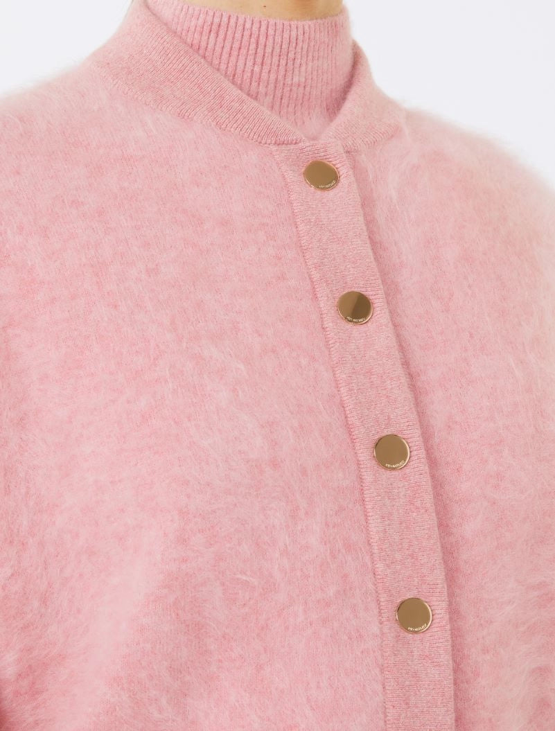 The casual silhouette of the bomber jacket is crafted in soft cashmere knit for a more feminine look. With customised, metallic snap-buttons.