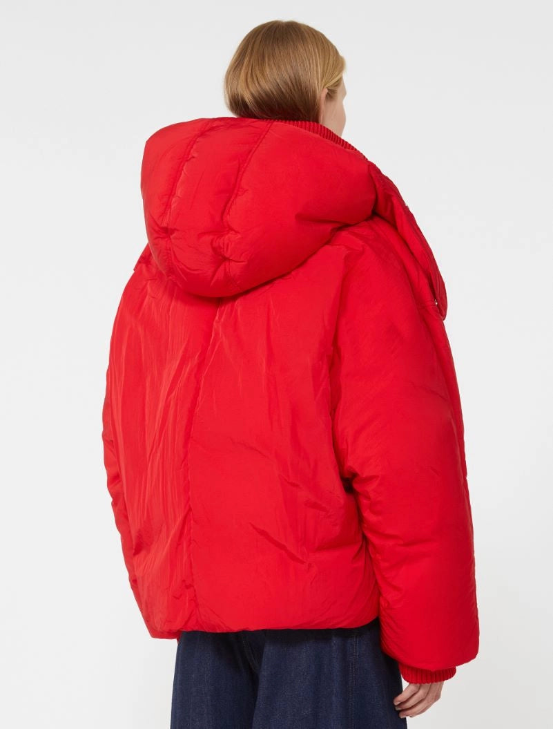 The SPORTMAX Glizia Bomber Jacket is designed for maximum comfort and style. Its soft-volume, waist-length design is made of water-repellent technical fabric and features goose down padding for warmth. It also comes with a detachable hood that closes with snap buttons and flapped side pockets for convenience. With a ribbed knit stand-up collar and wide fit, this jacket is perfect for any outdoor adventure.