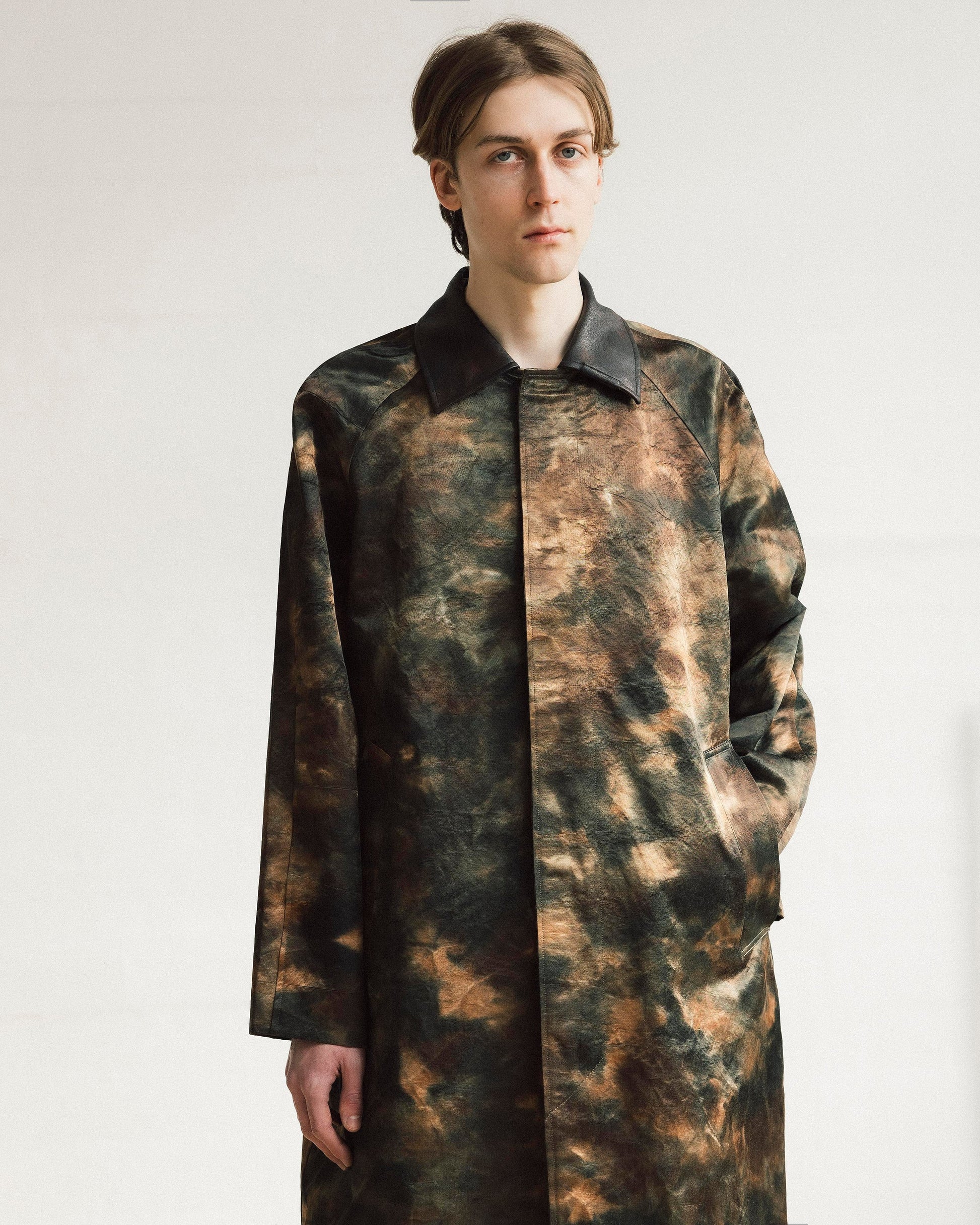 Indulge in the bold, artistic design and functionality of the SUNFLOWER Raglan Splash Coat. Crafted from allover printed Japanese nylon, this coat is both stylish and durable. The metal push button closure ensures a secure fit, while the washed faux leather collar adds a touch of luxury. Stay protected from the elements while making a statement with this must-have coat.