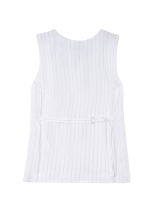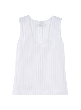 The Tela Boing Top is a versatile and stylish addition to any wardrobe. Made from pinstriped fluid fabric, this sleeveless top offers a comfortable and lightweight fit. Perfect for any season, it effortlessly transitions from day to night. Enjoy the sleek and sophisticated look of this must-have piece.