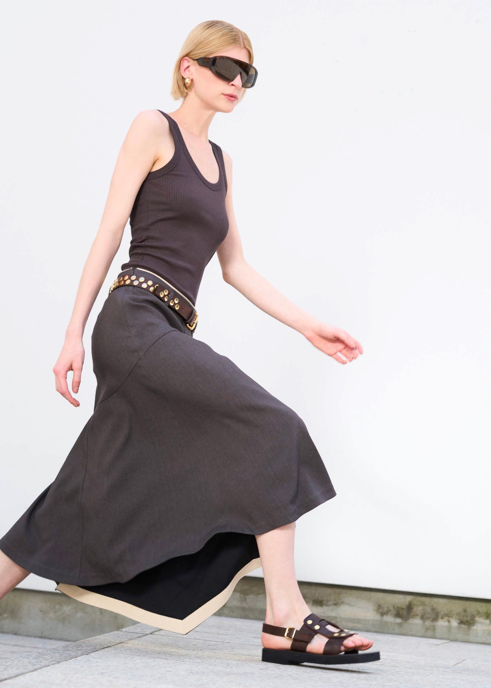 Asymmetric midi skirt in linen viscose in mahogany brown colour