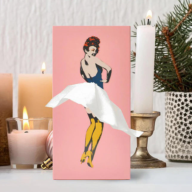 Tissue up girl remind of a skirt flying from a tissue sway in the wind blowing from outside the window. It is a designed product through the discovery of similarity between skirt and tissue images and its combination, in daily live.