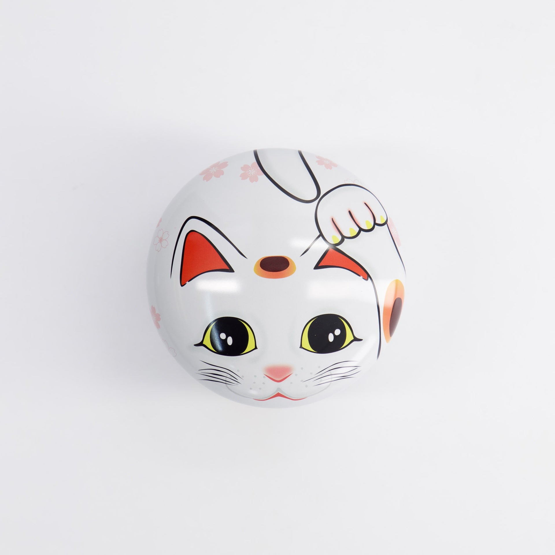 Stainless steel tea container with iconic lucky cat imagery. Made in Japan.
