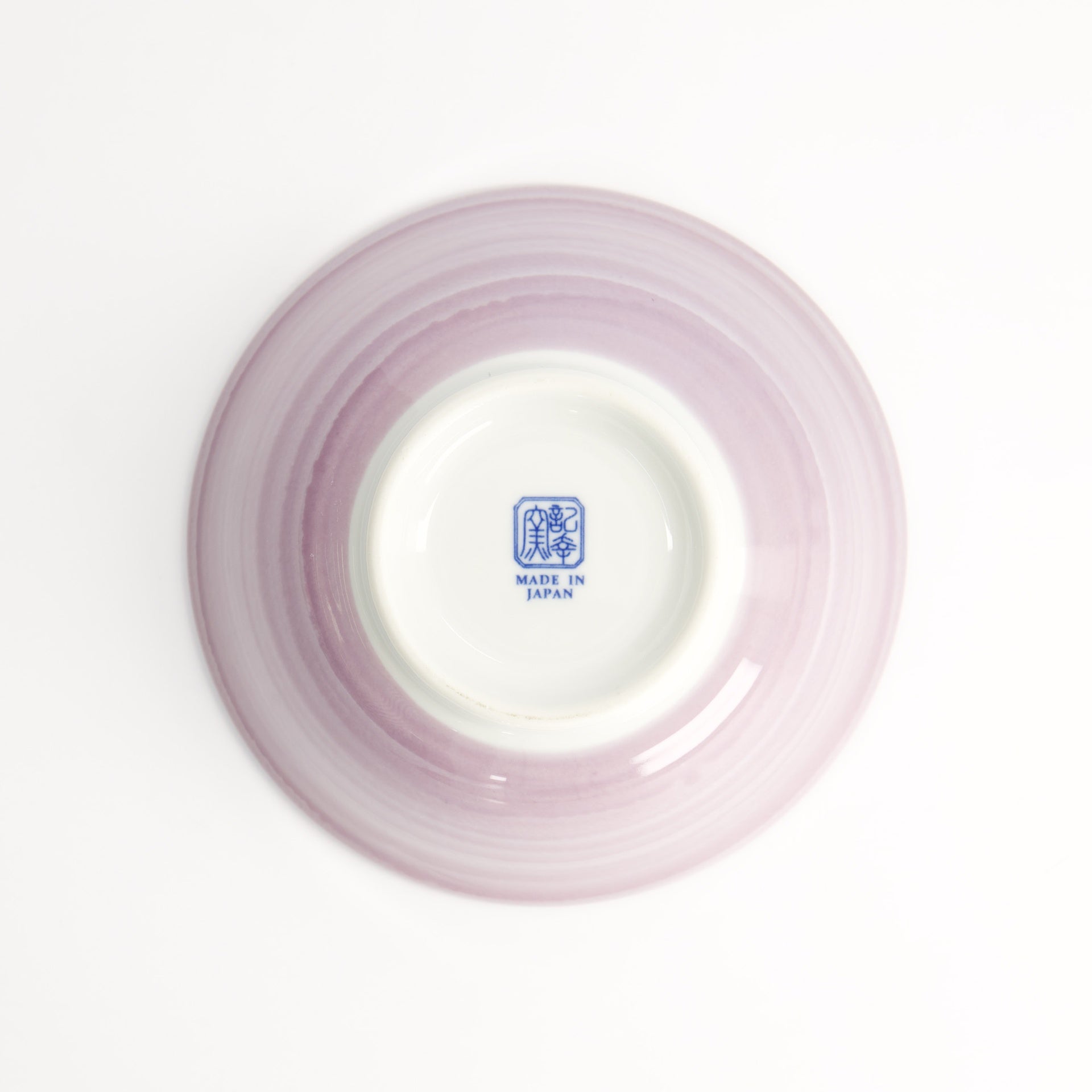 Porcelain bowl with cherry blossom design in purple. Dishwasher and microwave save. Made in Japan.